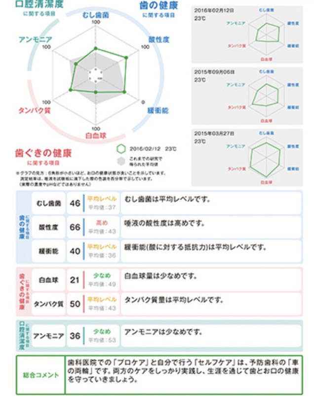 歯の健康、歯茎の健康、口腔清潔度などのデータが簡単にわかりま
